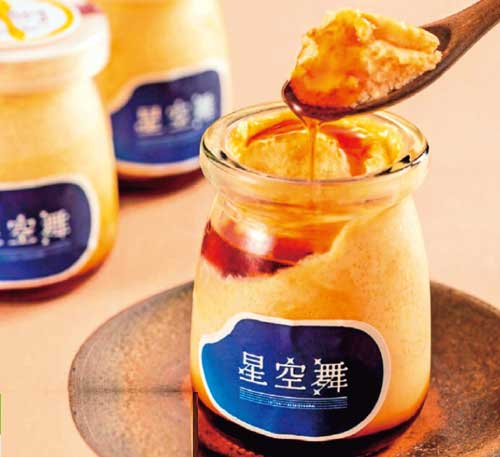 県産ブランド米「星空舞 」の米粉で作ったシフォンケーキに「白バラ牛乳」と生クリーム、山陰の卵で作ったプリン生地を染み込ませ蒸し上げた。固めの食感と濃厚な甘みが特徴。